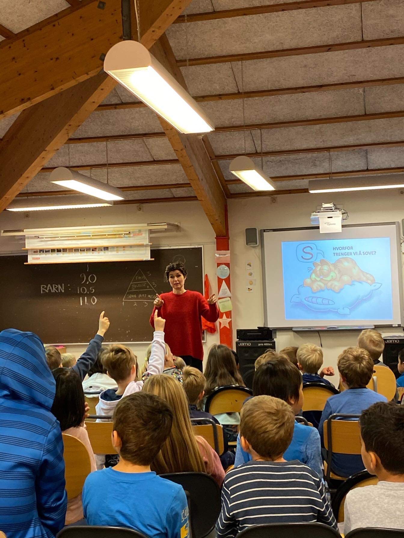 Vi skal ha mellom 9 og 11 timer søvn, men nesten ingen hadde det. Mange husker svampen godt. De lærte at hjernen er som en svamp – den skrumper inn og blir oppbrukt i løpet av dagen. Om kvelden orker den ikke mer. Men om natten blir den bygget opp igjen, får væske og næring. Da blir kunnskap lagret. Søvn er “lagreknappen” til hjernen. Så husker de batteribildet og øver på å kjenne etter om de er fulladet om morgenen, eller kanskje har mangel på energi. Søvntrekanten er også lett å forstå. Vi trenger både nok søvn, mat, drikke og bevegelse for å fungere godt. Når vi beveger kroppen, bygger vi opp søvntrykk som gjør det lettere å sovne om kvelden.