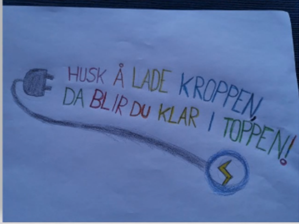 • Til vanlig oppfordrer vi lærerne til å gjøre innsjekksøvelsen: Hvor fulladet er du i dag? Den liker elevene godt. Elevene kan også gjøre aktiv line-up med spørsmål om søvn, for å bevisstgjøre.