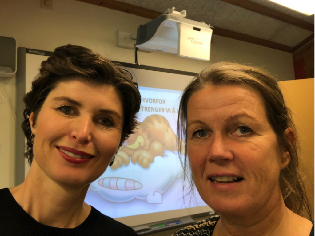 • Det materialet vi fikk tilgang til gjennom prosjektet var lett å ta i bruk for lærerne. Vi kan holde små foredrag for elevene og komme med relevante eksempler. Det kjennes svært meningsfullt. Nok søvn er avgjørende for livsmestring. Det går rett inn i fagfornyelsen. Vi syns opplegget har vært veldig nyttig og interessant. Det har blitt så tydelig for oss at det er det samme hvor godt vi planlegger om elevene kommer med tomt batteri. Vi kan ikke gå hjem og legge elevene, men vi kan gi dem kunnskap om søvn og læring. Så kan de gå hjem og lære foreldrene sine.